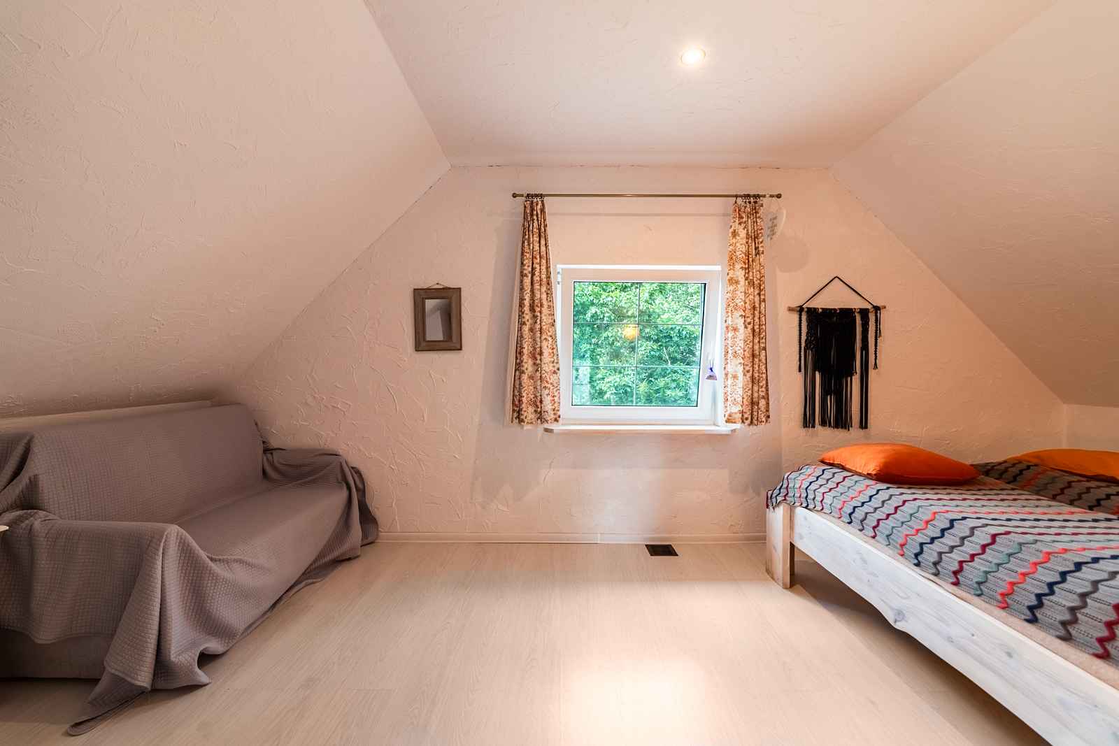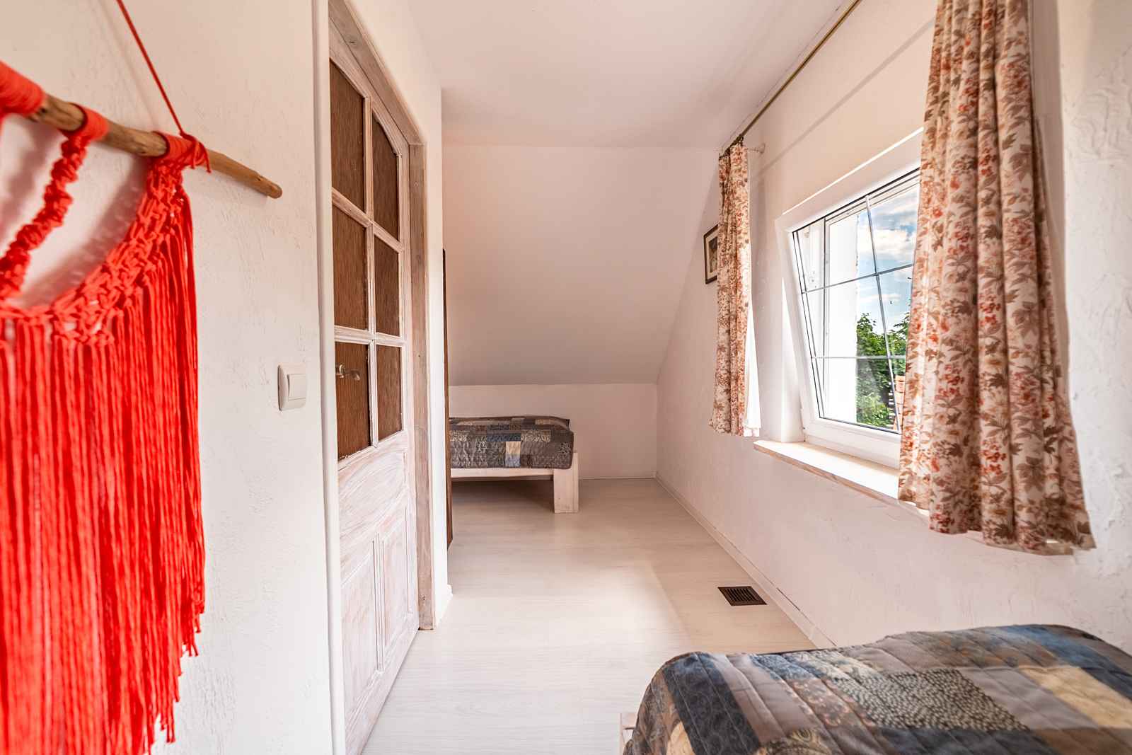 Dwie, komfortowe sypialnie na poddaszu z wygodnymi łóżkami zapewnią Państwu spokojny sen i odpoczynek.